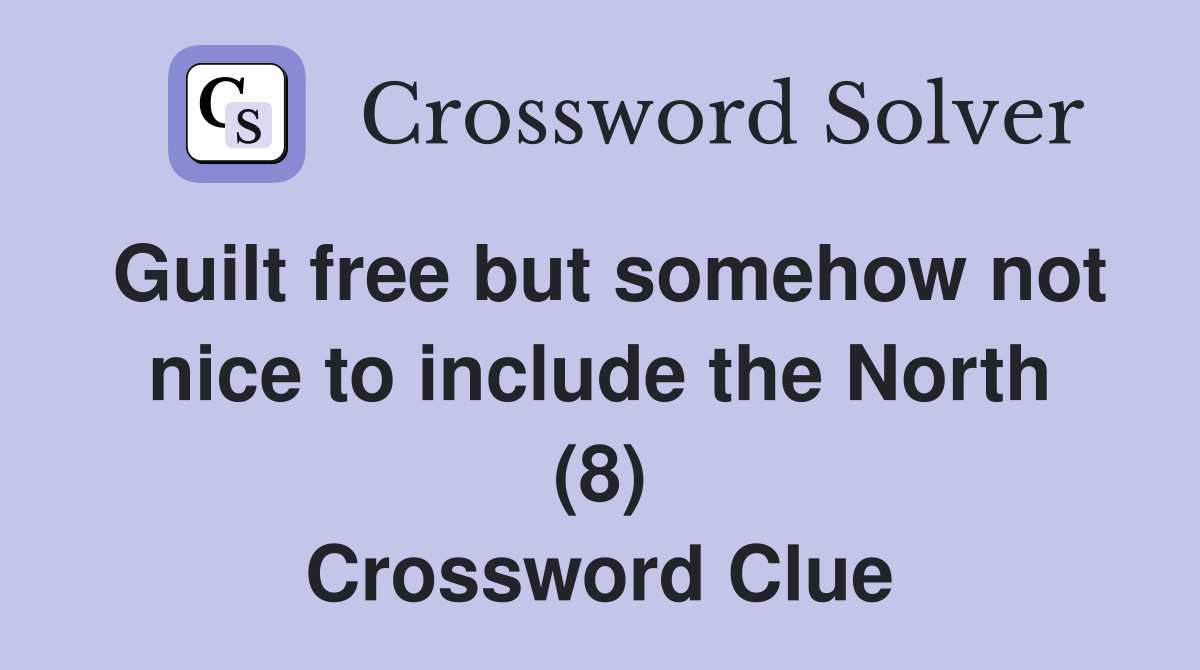 Guilt free but somehow not nice to include the North (8) Crossword
