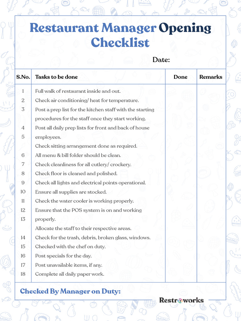 Restaurant Manager Checklist PDF