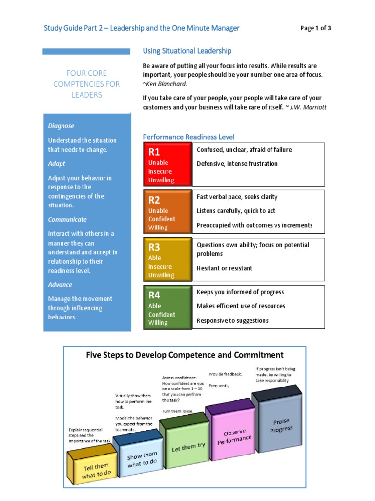 Part 2 Study Guide Leadership and The One Minute Manager PDF