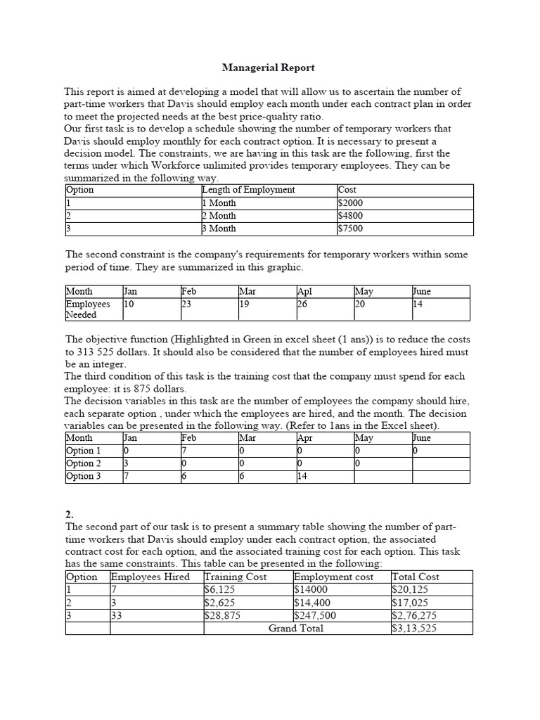 Hamilton Ashley HMGT 300 Managerial Report docx MANAGERIAL REPORT
