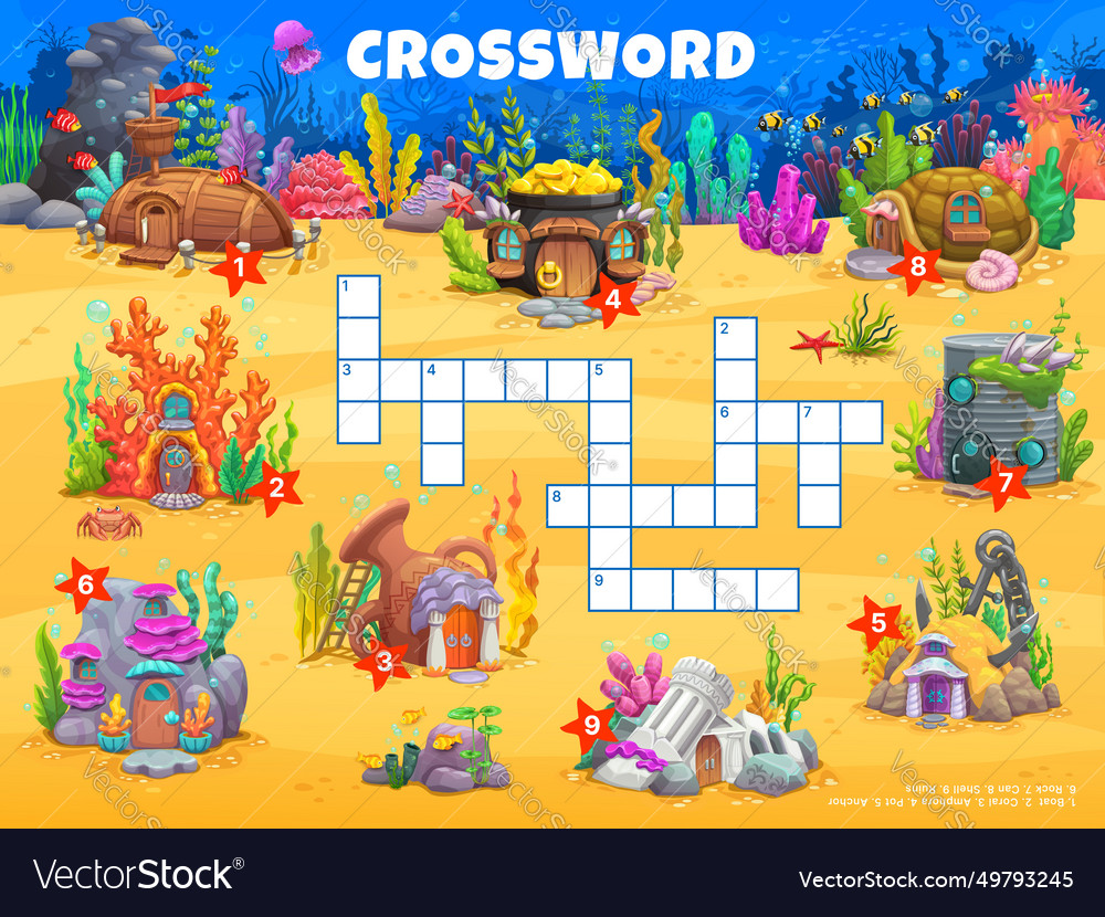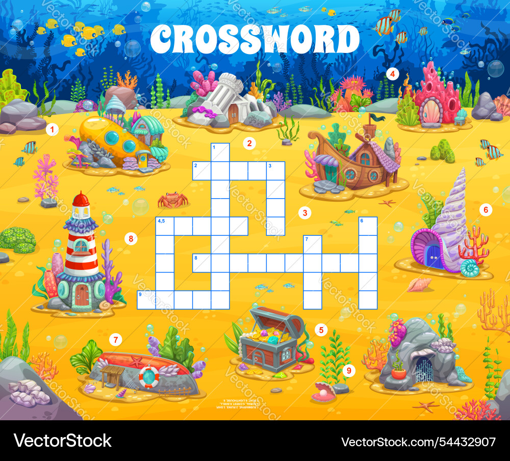 Crossword quiz game grid cartoon underwater houses