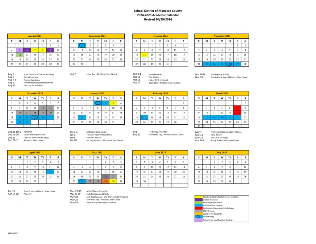 Revised Manatee County School Calendar PDF Public Holiday Festival