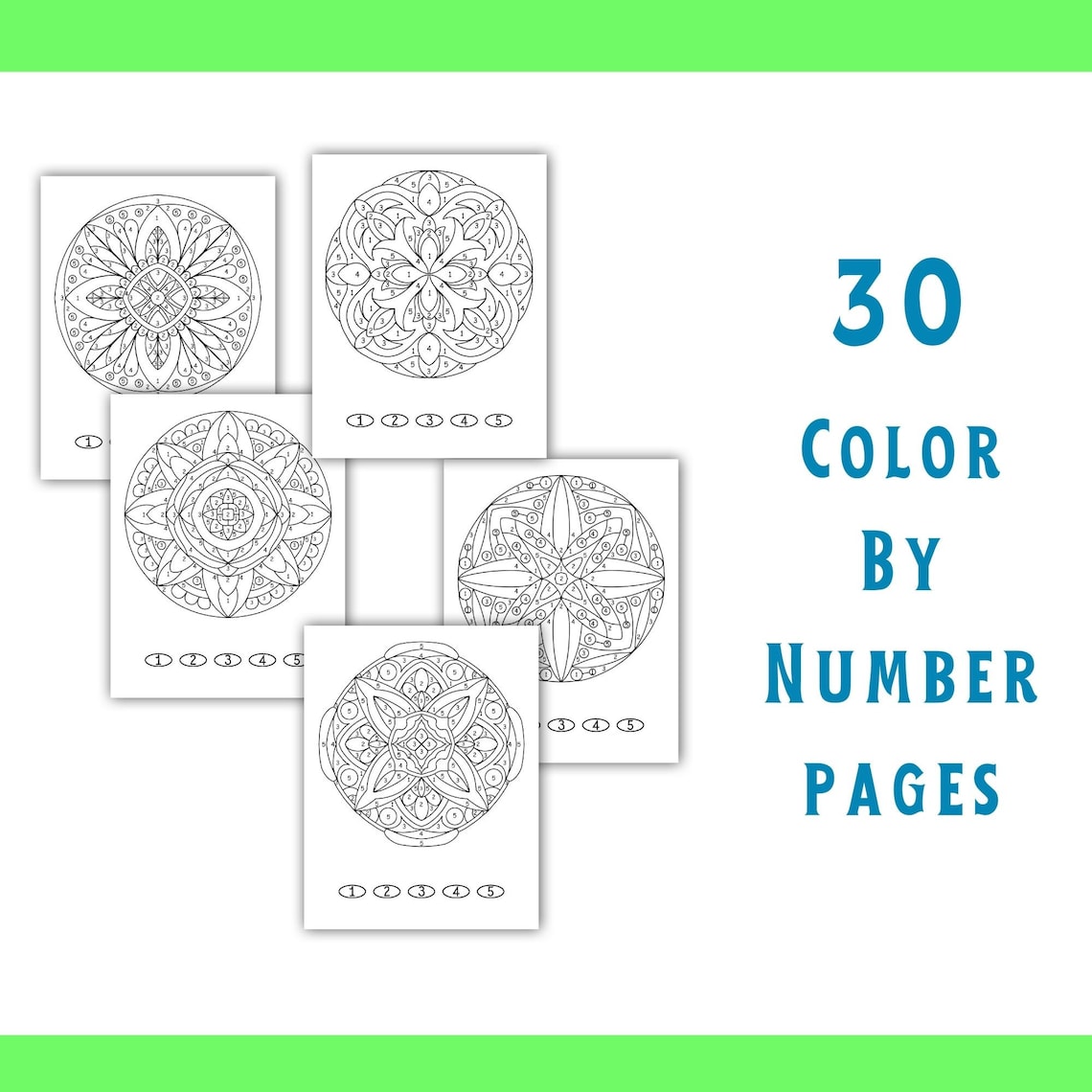 Mandala Color by Number: 30 Pages for Adults Kids (digital Download