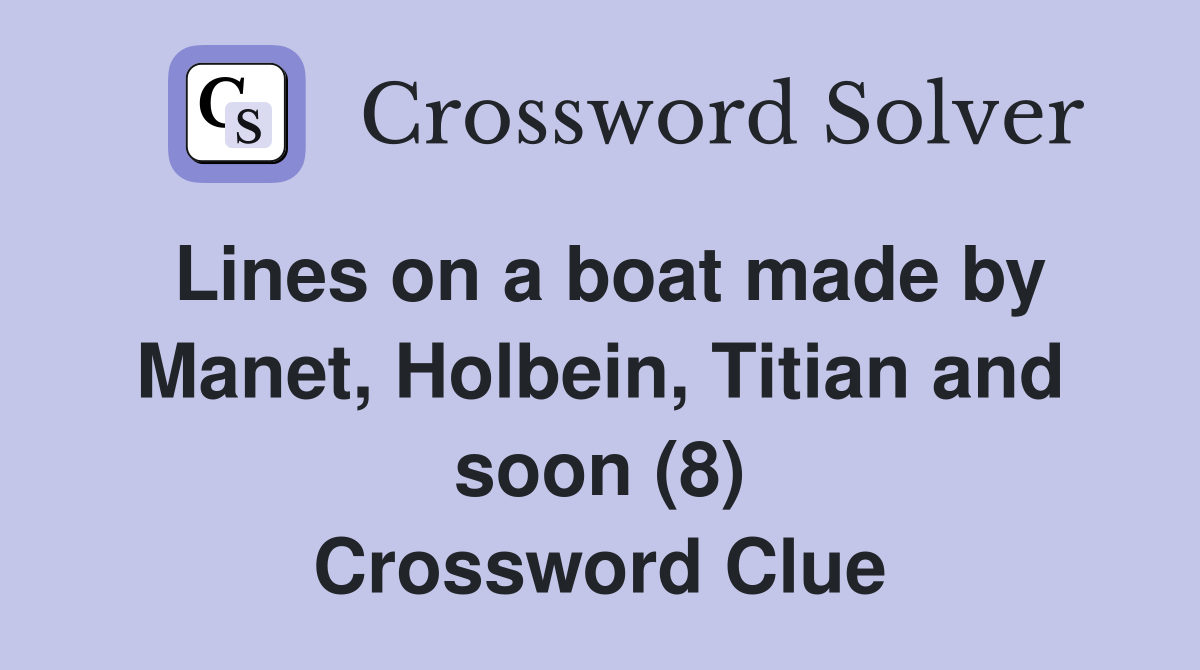 Lines on a boat made by Manet Holbein Titian and soon (8) Crossword