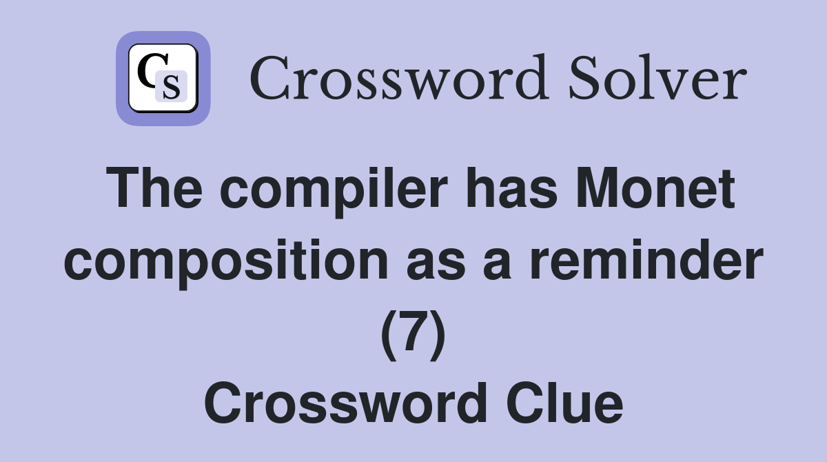 The compiler has Monet composition as a reminder (7) Crossword Clue