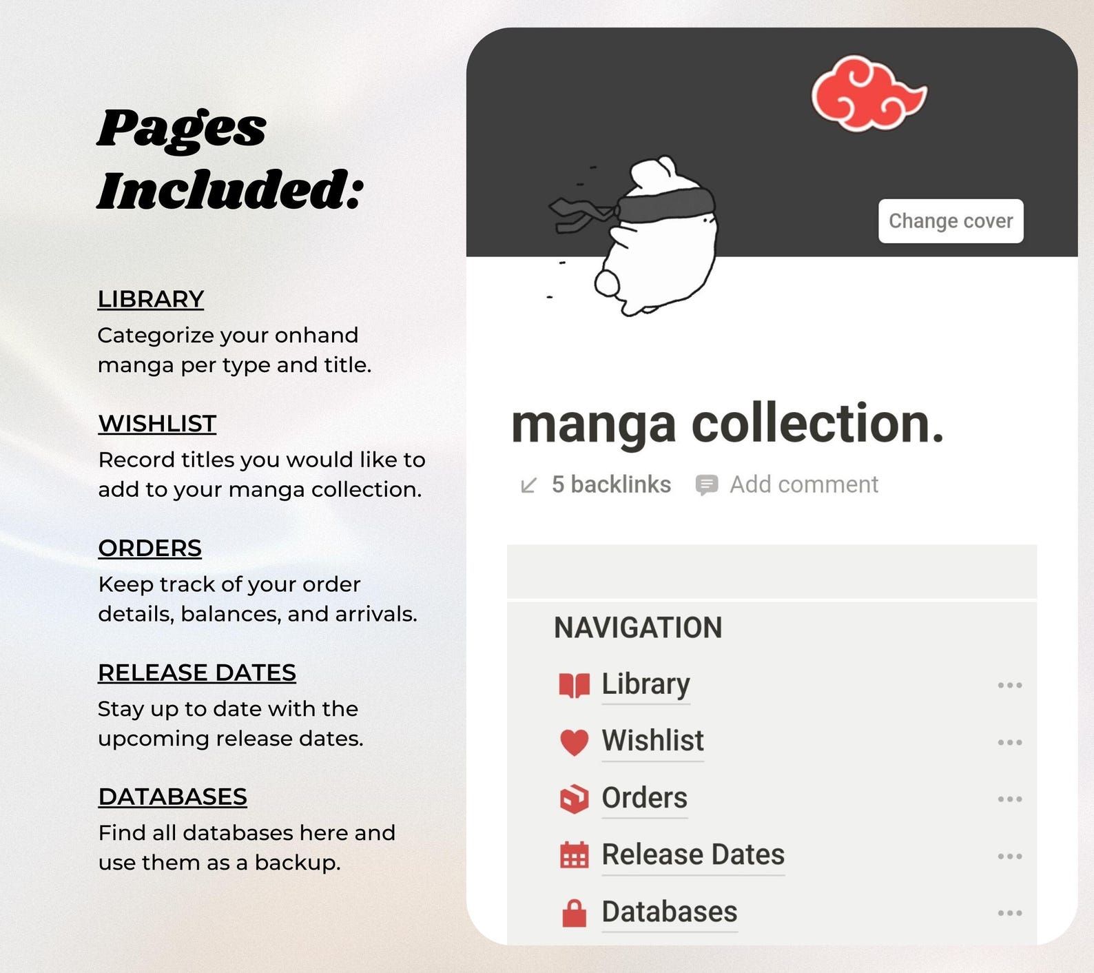 Manga Collection Tracker Notion Template Notion Dashboard for Anime