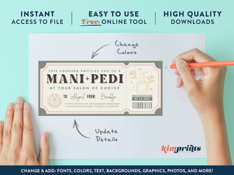 Pedicure Ticket Editable Template Surprise Mani Pedi Gift Certificate