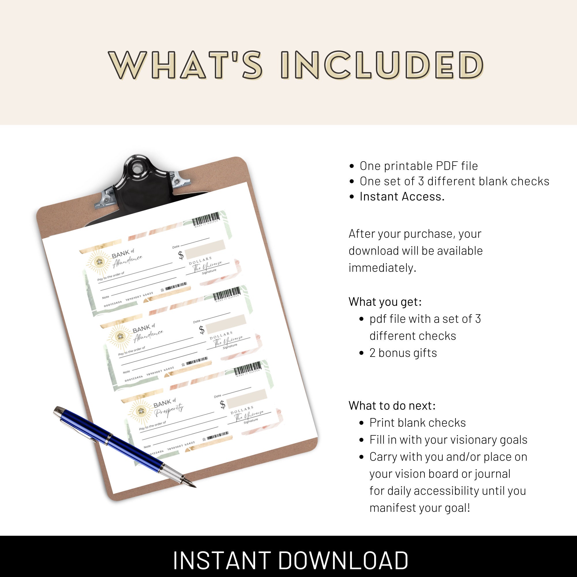 Manifestation Check Printable Blank Abundance Cheque law of Etsy