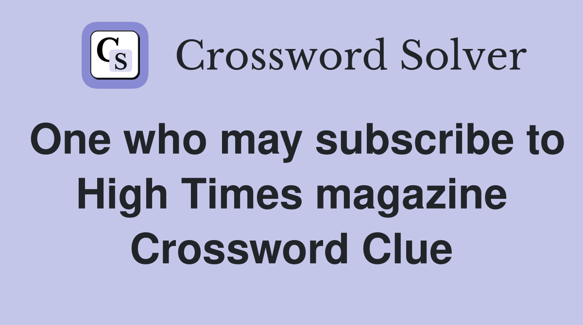 One who may subscribe to High Times magazine Crossword Clue Answers