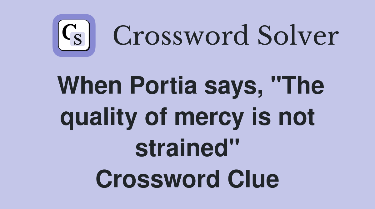 When Portia says quot The quality of mercy is not strained quot Crossword