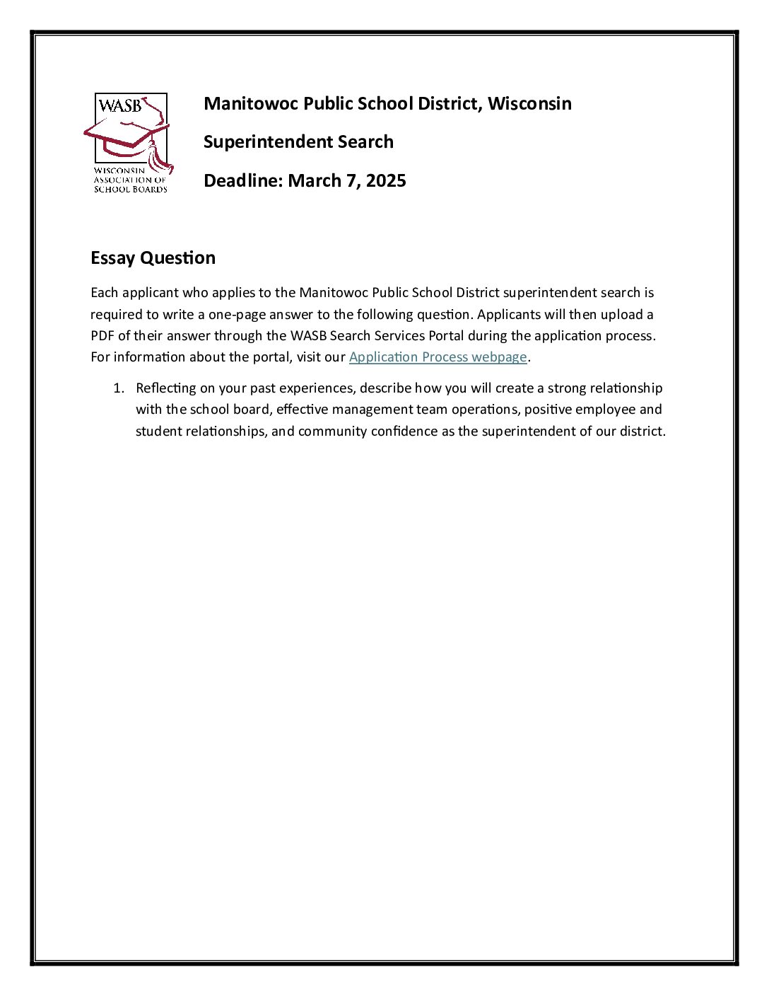 Essay Question Manitowoc 2025 Wisconsin Association of School Boards