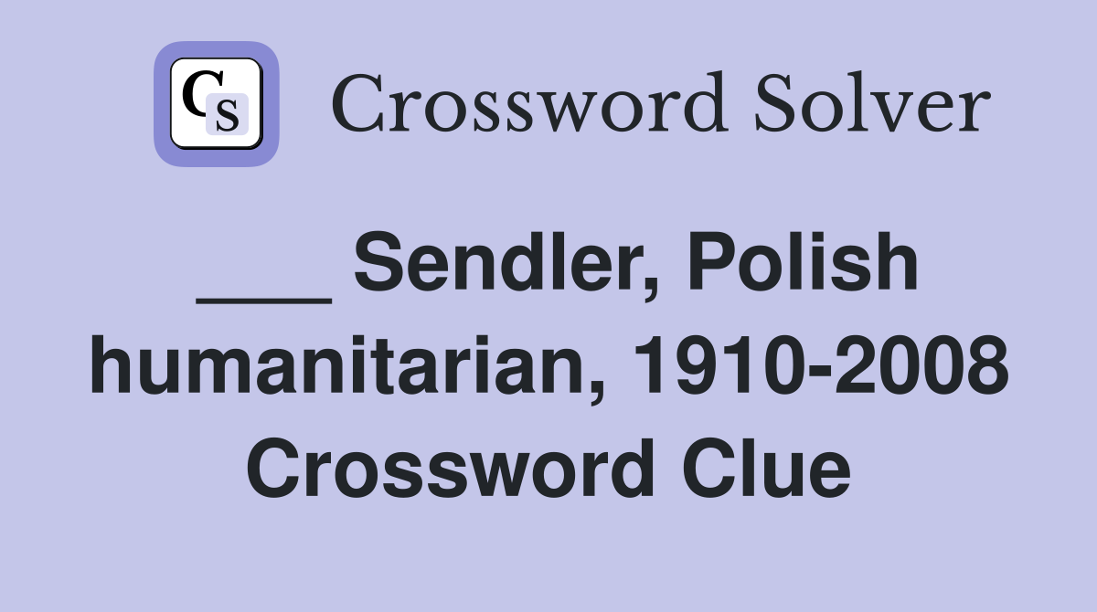 Sendler Polish humanitarian 1910 2008 Crossword Clue Answers