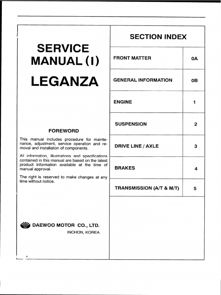 (DAEWOO) Manual de Taller Daewoo Leganza Ingles PDF