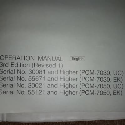 Sony Operation Manual for DAT Recorder PCM 7050/7030 1993 Reverb
