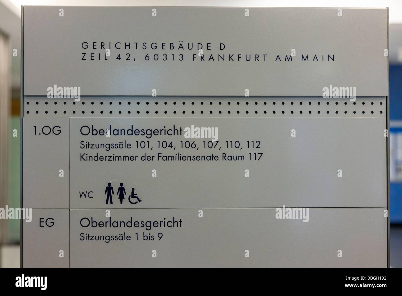 05 June 2025 Hesse Frankfurt/Main: View of a signpost in the court