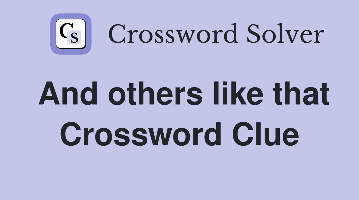 And others like that Crossword Clue Answers Crossword Solver