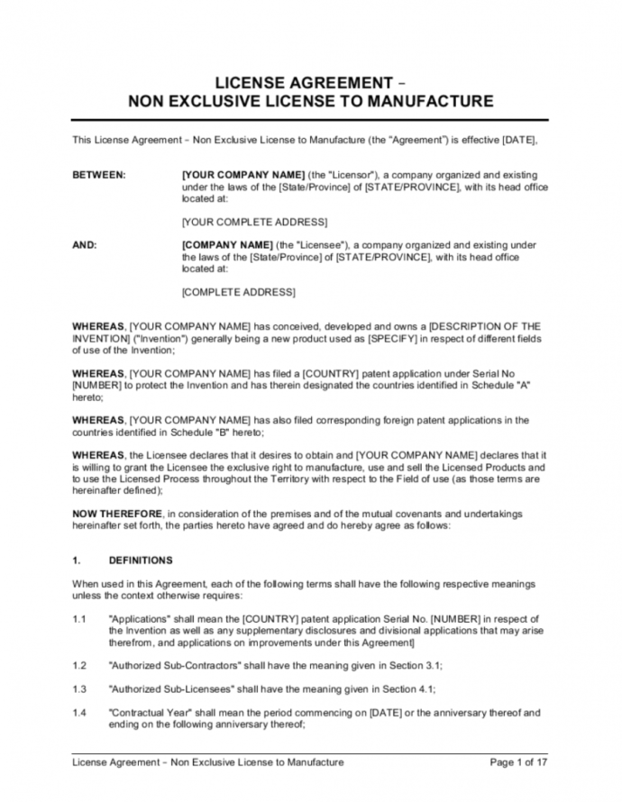 Here are some of the images for Manufacturing License Agreement Template that we found in our website database.