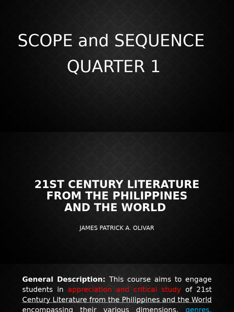 Scope and Sequence 21st Century Lit Quarter 1 Sy 24 25 PDF Genre