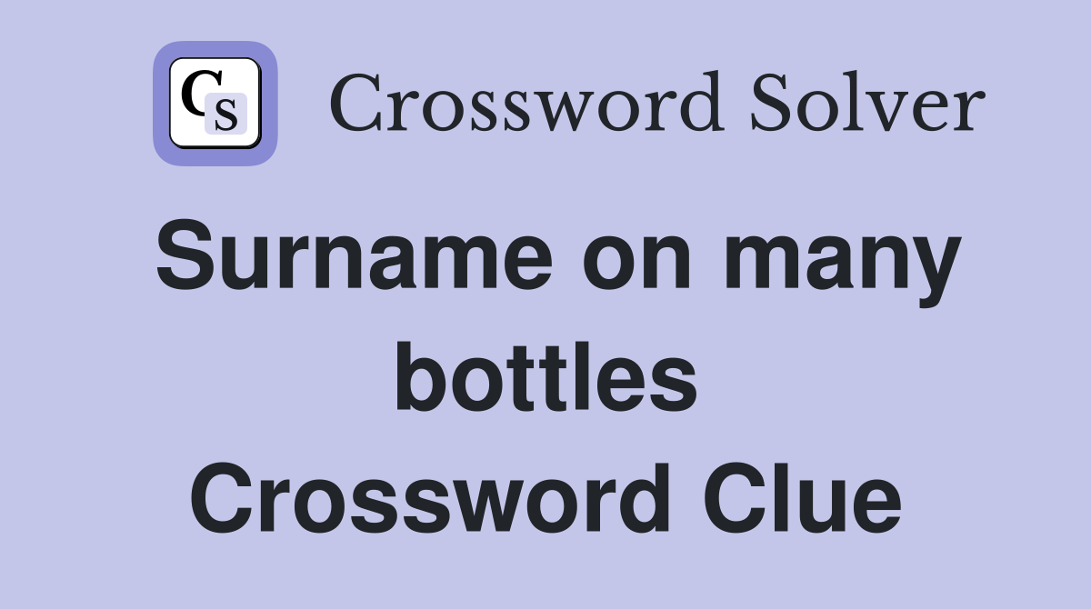 Surname on many bottles Crossword Clue Answers Crossword Solver