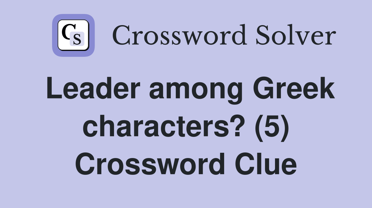 Leader among Greek characters? (5) Crossword Clue Answers Crossword