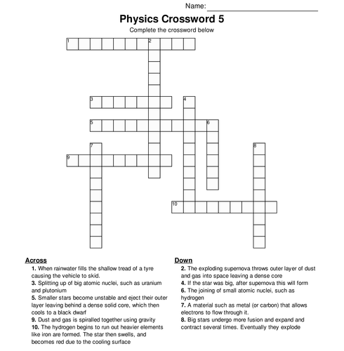 Physics Crossword Puzzle Worksheet Activity by Crossword Corner TPT
