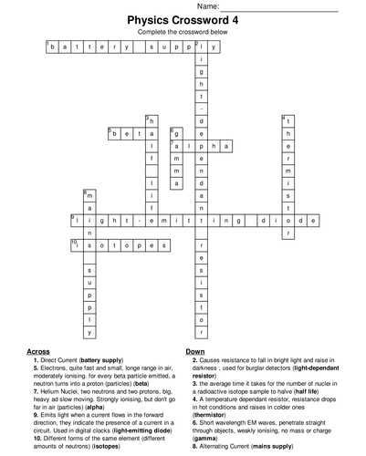 Printable Worksheets com Science 11th Physics Crossword Answers