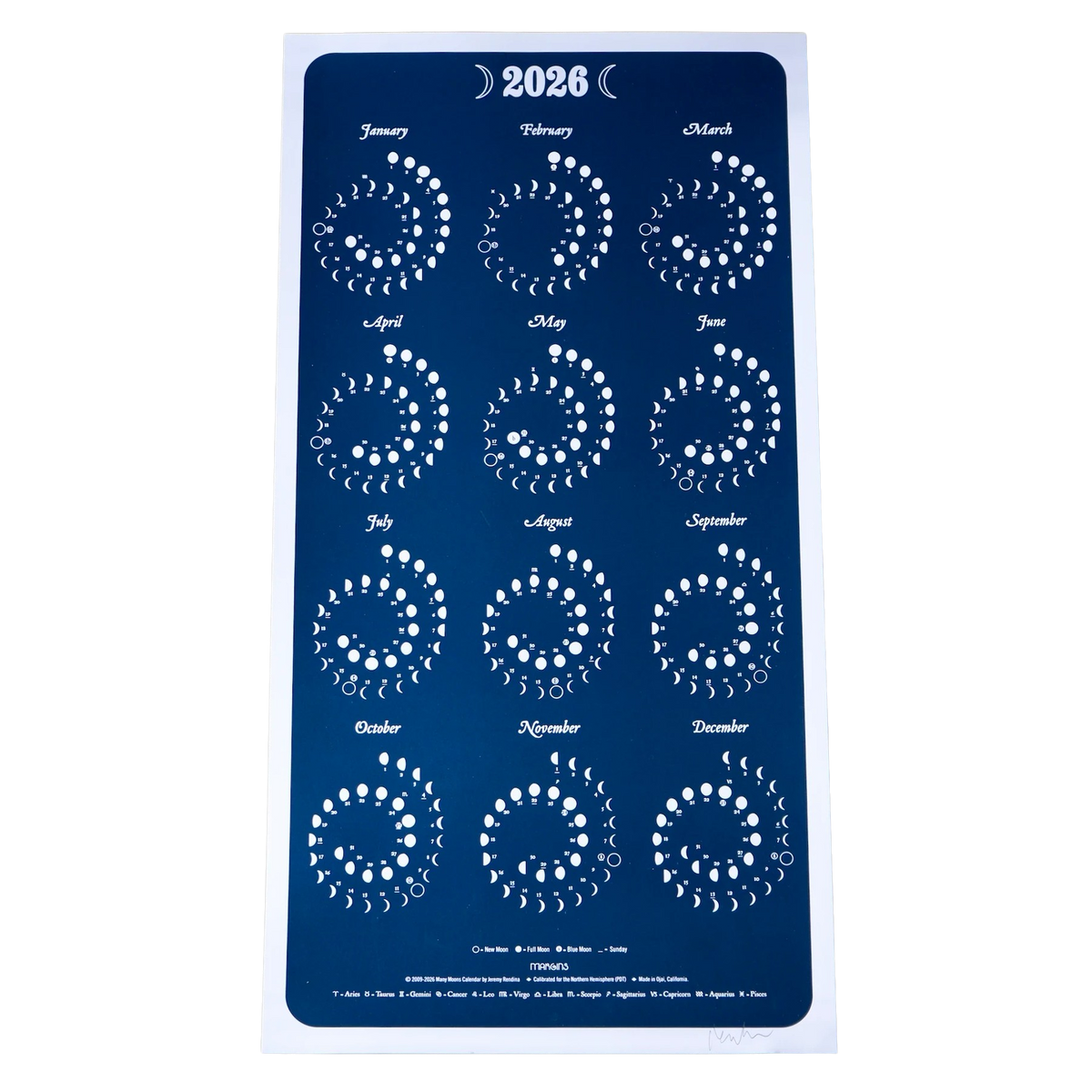 Jeremy Rendina 2017 Many Moons Calendar Electric Indigo Printed