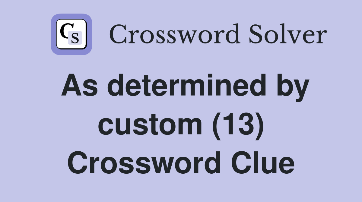 As determined by custom (13) Crossword Clue Answers Crossword Solver