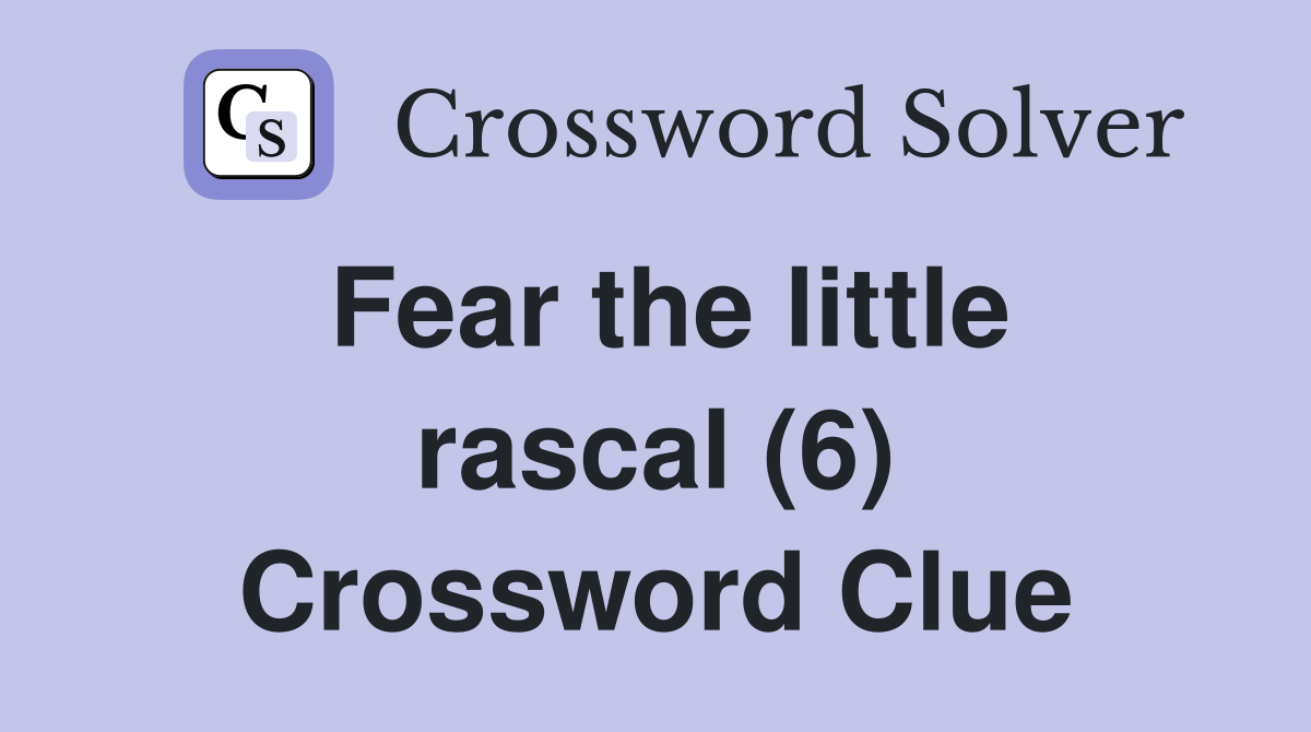 Fear the little rascal (6) Crossword Clue Answers Crossword Solver