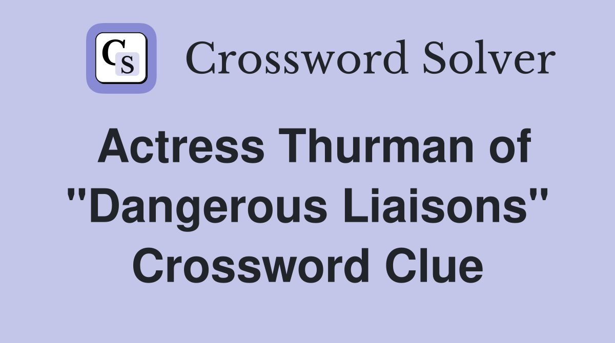 Actress Thurman of quot Dangerous Liaisons quot Crossword Clue Answers