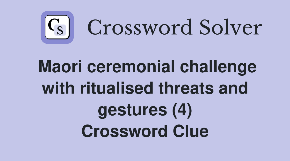Maori war chant with gestures (4) Crossword Clue Answers Crossword