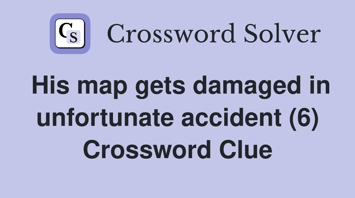 His map gets damaged in unfortunate accident (6) Crossword Clue
