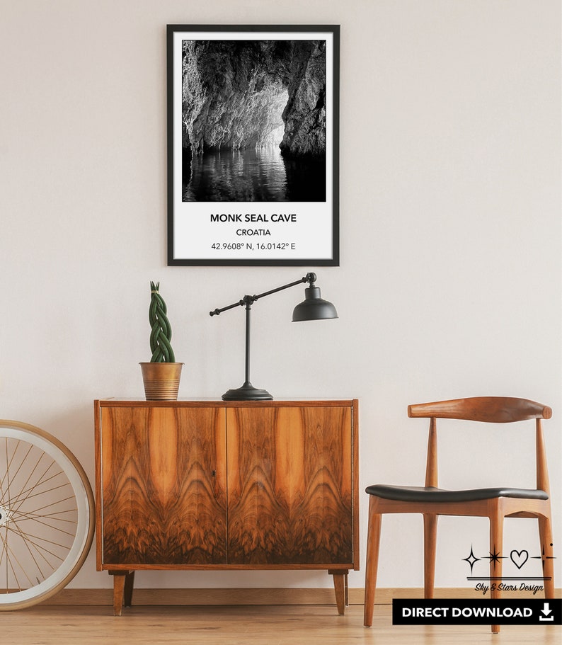 Monk Seal Cave Biševo Island Croatia Europe City Black White
