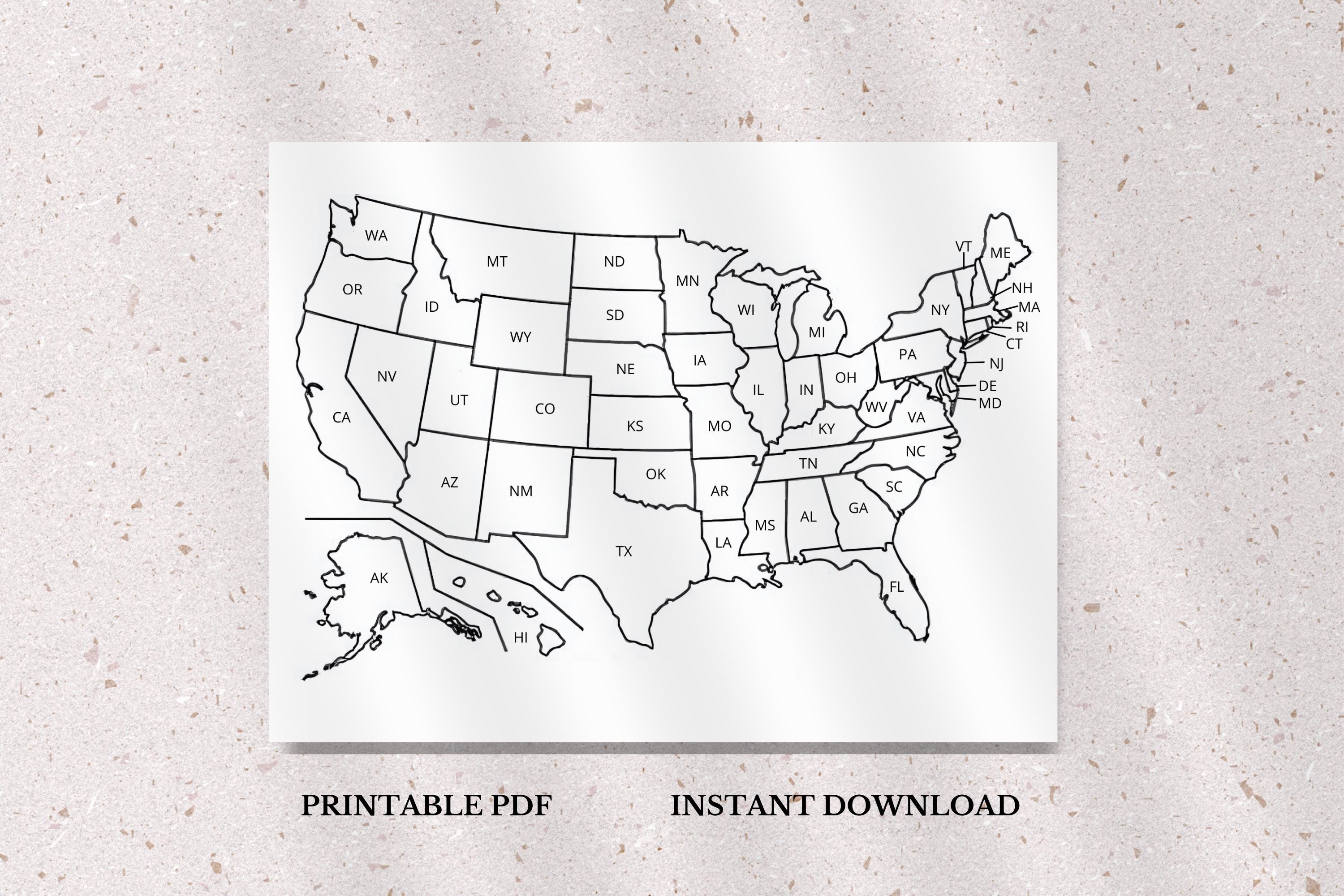 Black and White USA Map Printable Minimalist USA Map With States Etsy