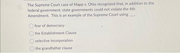 The Supreme Court case of Mapp v Ohio recognized Chegg com