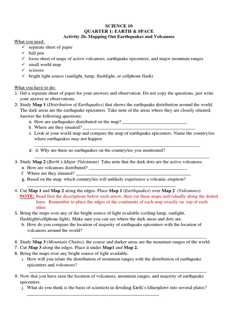 Mapping Earthquakes and Volcanoes answer sheet pdf Mapping