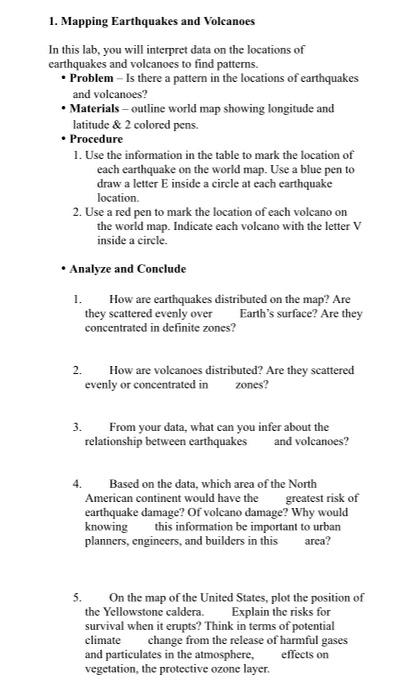 Solved 1 Mapping Earthquakes and Volcanoes In this lab you Chegg com