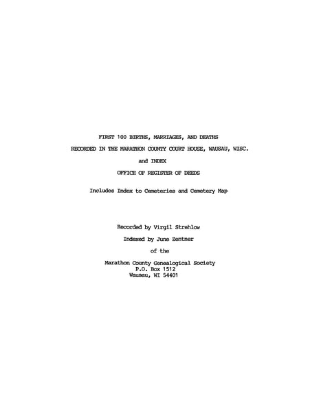 MARATHON WI: First 100 Births Marriages and Deaths Recorded in the