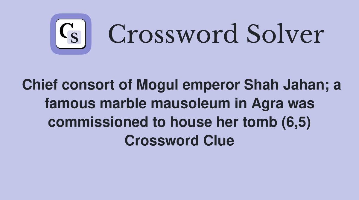 Chief consort of Mogul emperor Shah Jahan a famous marble mausoleum in