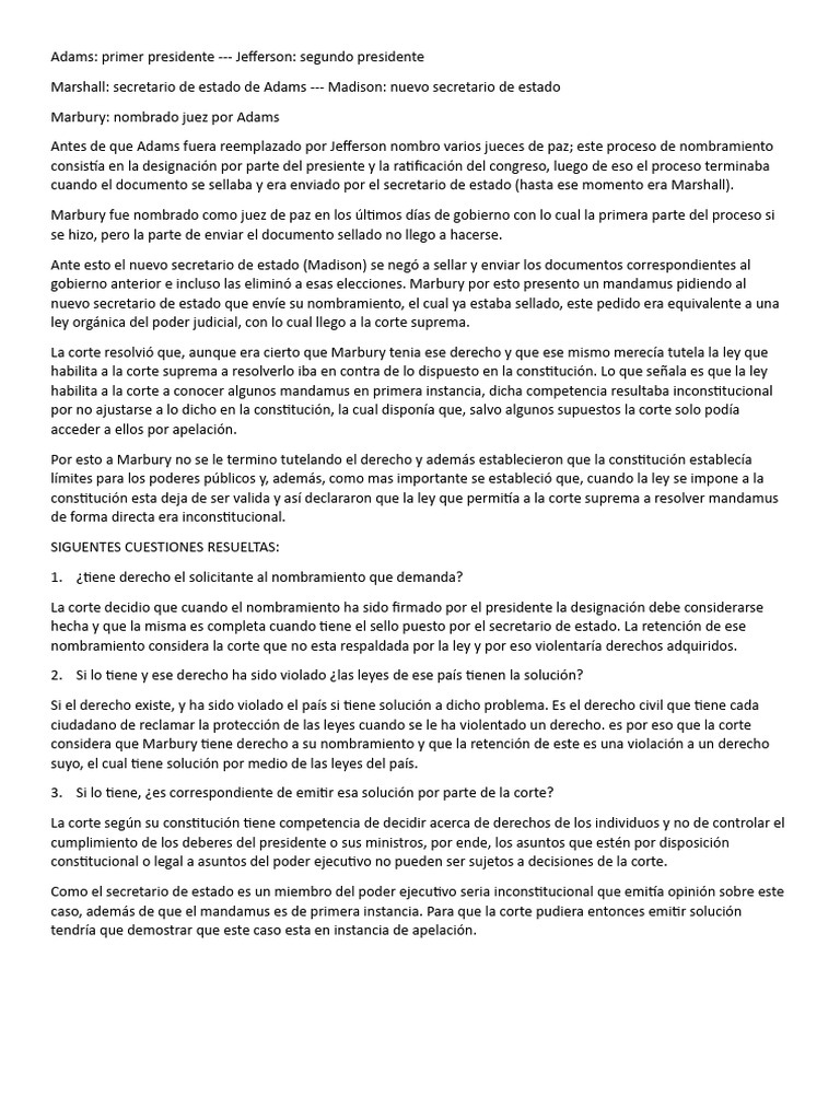 Caso Marbury vs Madison Analisis PDF Juez Marbury V Madison