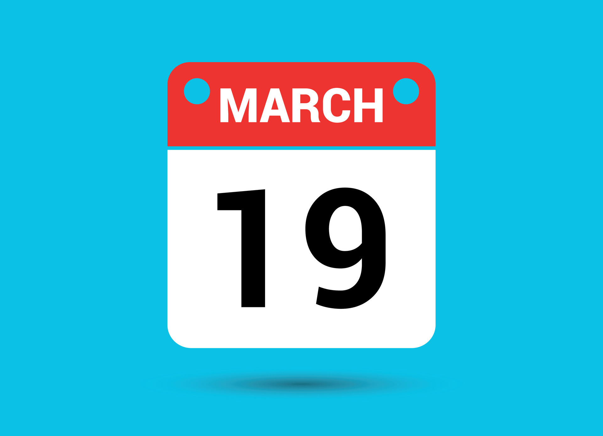 March 19 Calendar icon with shadow Day month Meeting appointment