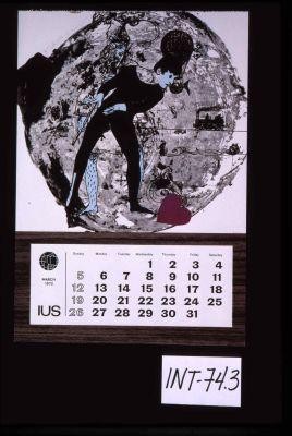 March 1972 calendar image of mimes against a globe backdrop Calisphere