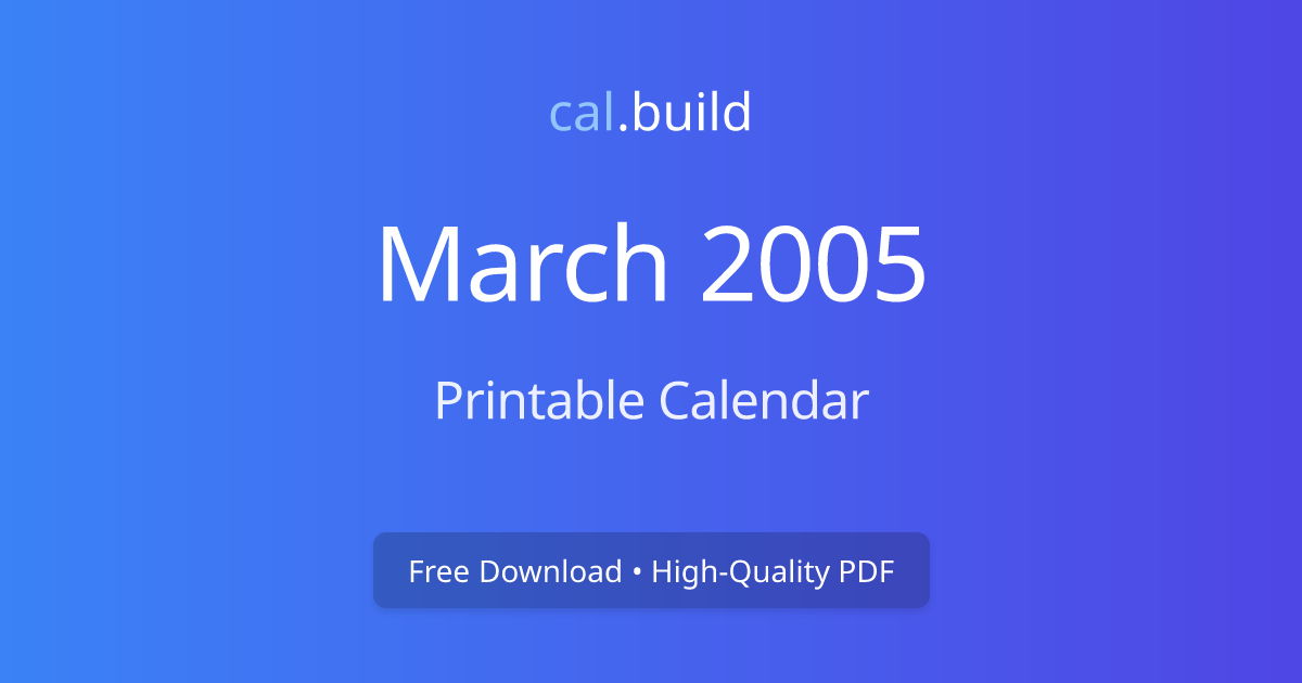 March 2005 Calendar Printable Free Download