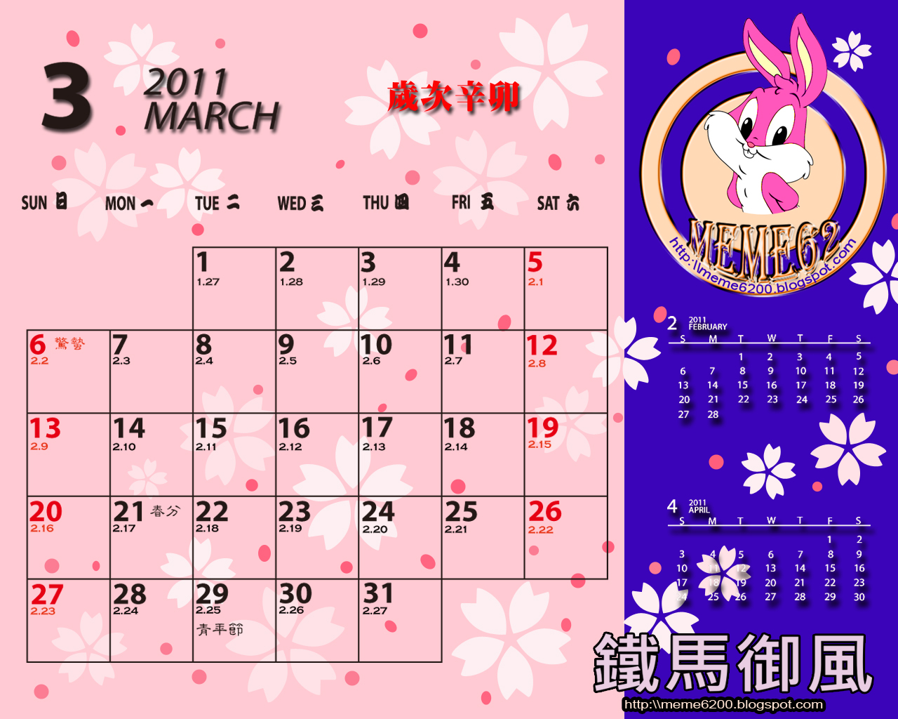 鐵馬御風 月曆 2011 年 3 月 Calendar of March 2011