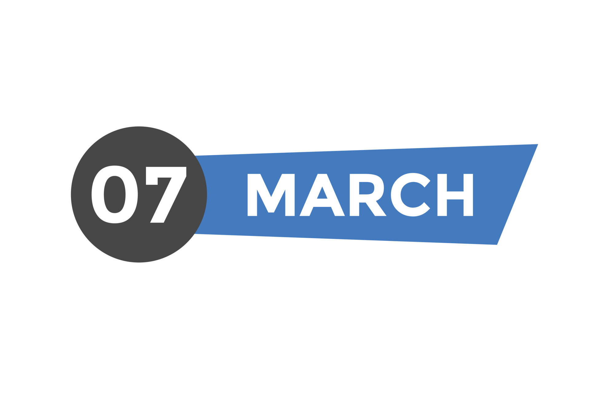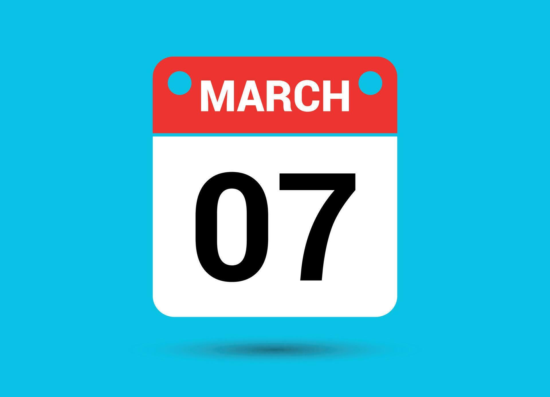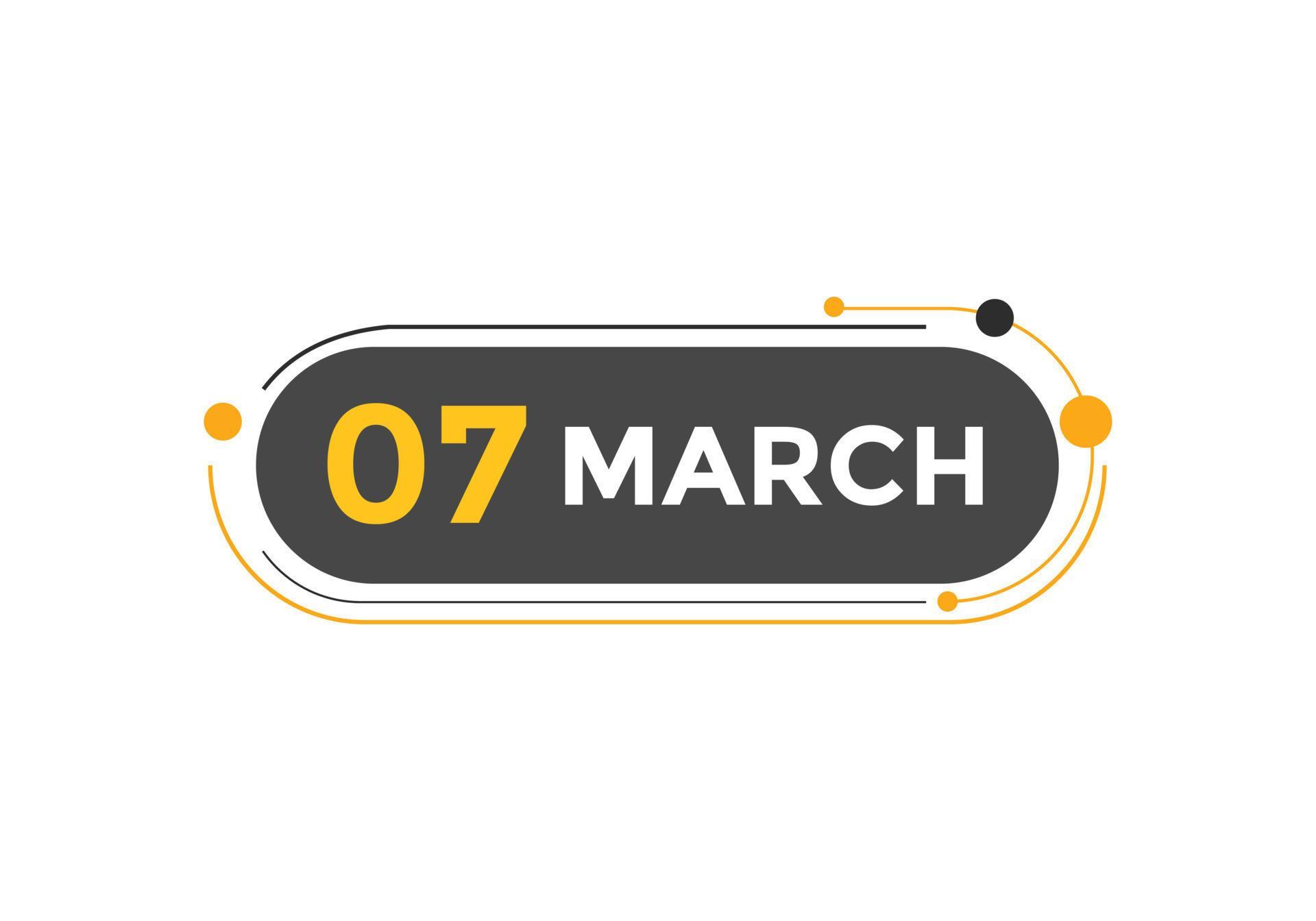 7 March vector icon calendar day 7 date of March Seventh day of March