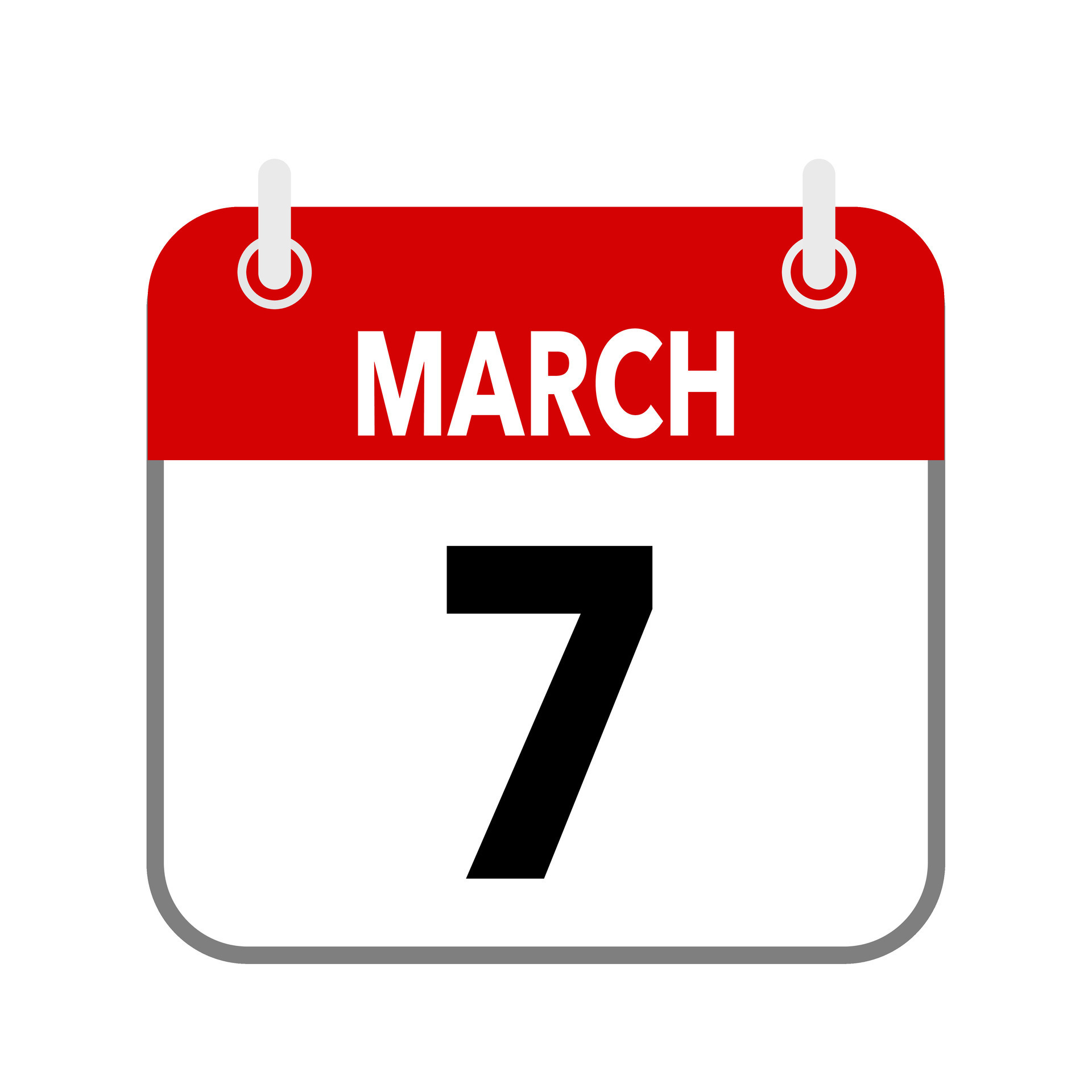 MARCH 7 A leaf of the flip calendar with the date of MARCH 7 Flat