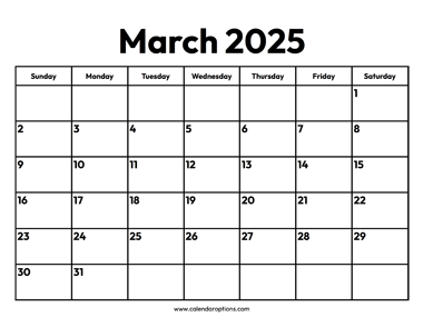 March 2025 Calendar Calendar Options