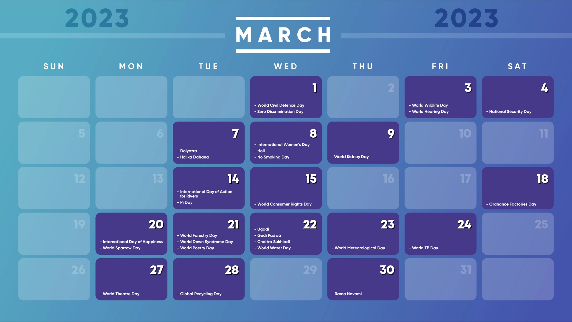 FREE March Content Calendar Ideas BlueHuki Digital Marketing and
