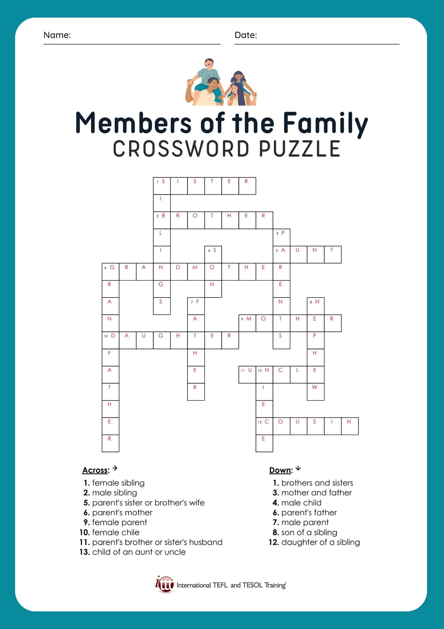 EFL Members of the Family Crossword Puzzle ️ ️ ️ ITTT