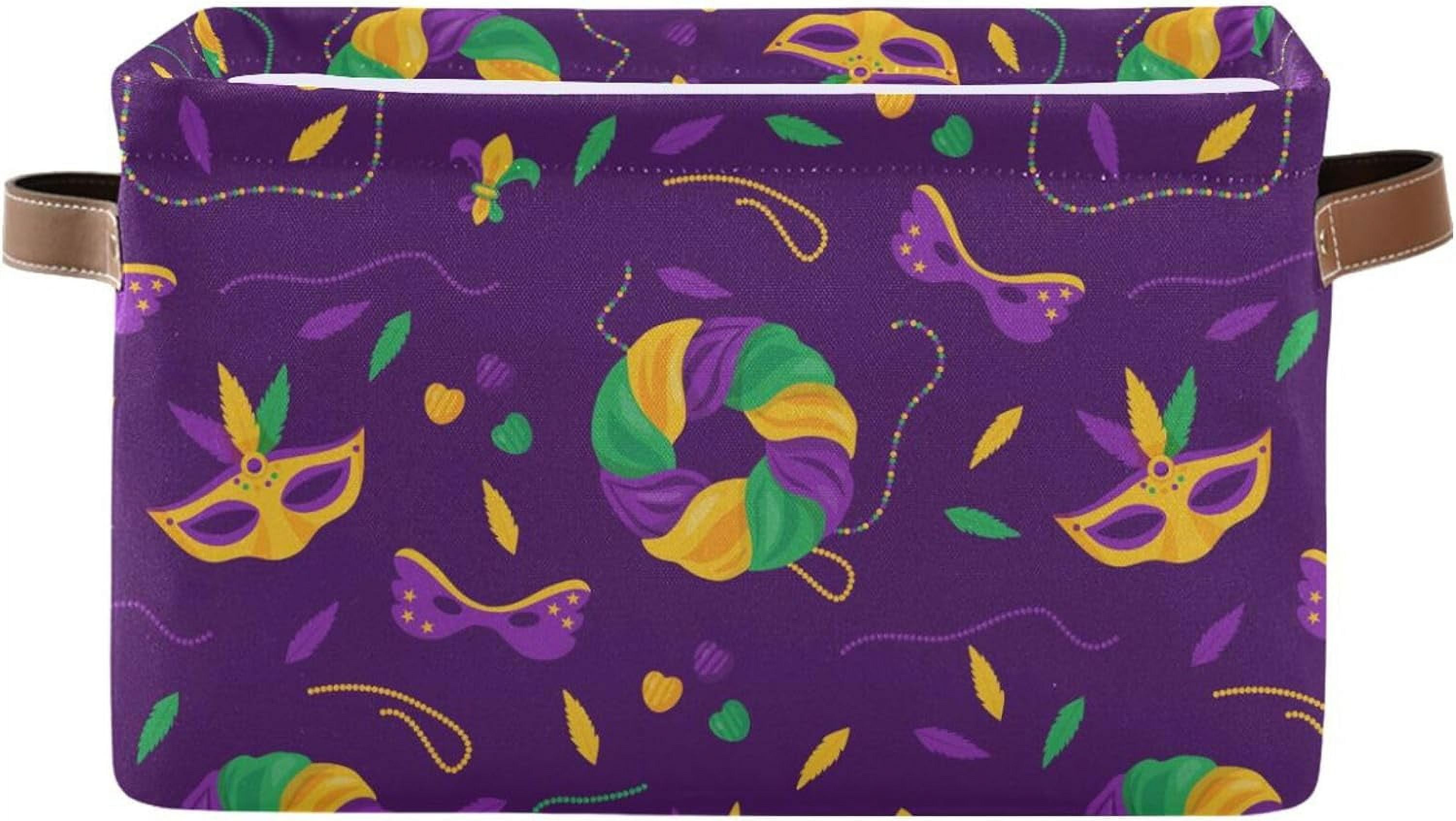 Coolnut Colorful Mardi Gras Storage Bins Foldable Canvas Fabric Storage